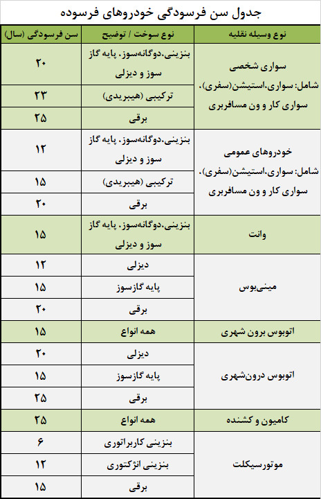 سن فرسودگی برای سواری و وانت از چه سالی میباشد؟